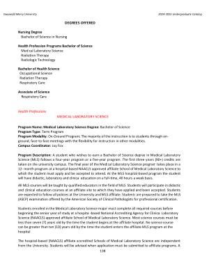 Program Name : Medical Laboratory Science Degree : Bachelor of Science Program Type : Term Program Program Modality : On-Ground Program ; The majority of the instruction is to students through onground , face-to-face meetings with the flexibility for instruction in other modalities . Campus Coordinator : Joy Fox