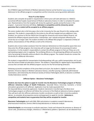Students also have the option to apply for transfer into the Bioscience Technologies program at Thomas Jefferson University College of Health Professions . Gwynedd Mercy University maintains a formal articulation agreement with Jefferson . Application must be made separately from the Gwynedd Mercy University application . Students interested in transferring to the Bioscience Technologies program at Jefferson will follow the curriculum of the Medical Laboratory Science program . They will work with the Jefferson admissions transfer coordinator as well as their University academic advisor , to complete all prerequisite courses and paperwork to apply for transfer . Admission is competitive and students have no guarantee that they will be accepted for transfer .