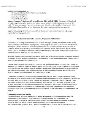 Certain functional abilities are essential for delivering safe , effective , quality nursing care during clinical education activities . Therefore , the faculty has determined that certain competency standards are requisite for admission , progression , and graduation from the BSN programs . In addition to classroom learning , clinical learning occurs throughout the program and involves considerations , ( such as patient safety and clinical facilities , not present for classroom accommodation . For this reason , any applicant or individual who seeks accommodations prior to or immediately after enrolling in the nursing programs must also request an assessment of the types of reasonable accommodations needed for the clinical education component of the program .