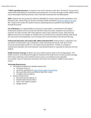 Use of Marijuana : As a Gwynedd Mercy University nursing student , a commitment to the highest professional standard and the contract we hold with society to be safe , competent care providers is expected . Our legal contracts with clinical agencies require clean substance screens . State laws that legalize marijuana do not change our standard and our commitment to a drug-free lifestyle , both during the school year and during breaks . Use of marijuana will not be permitted in the School of Nursing .