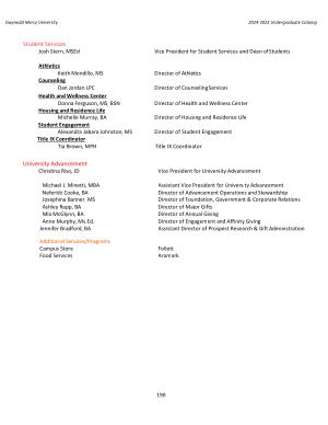 Director of Health and Wellness Center Director of Housing and Residence Life Director of Student Engagement Title IX Coordinator