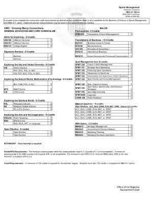 Sport Management Core 33 credits | |||||
