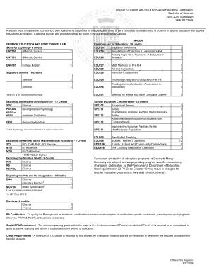 Special Education Concentration - 33 credits |