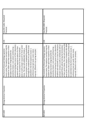 The first of a three-part biology capstone course series . The capstone course ( s ) help the student to reflect upon how expertise in their discipline has been integrated with the university mission , core values and learning outcomes during the course of their education . Students will be exposed to options for their future and prepare for their post-graduate plans as well as begin research for their senior thesis . The class will additionally initiate a service project to be completed by graduation and begin the compilation of a portfolio to be submitted in the third capstone course . 1 conference hour per week . Junior status required . Offered in the spring semester . |