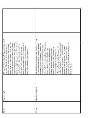 This course is designed as a first programming course for CIS majors or anyone interested in programming . Taught in one of the industry ' s leading programming language C ++ or Java , this course will cover the structured and procedural programming aspects of the language , including top-down design , loops , conditional structures , use of variables , scope , arithmetic operations , processing records , Boolean algebra , and reinforcement of basic algorithmic design . This will give the student a good foundation for more advanced topics in programming . |