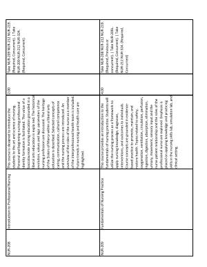 This course is designed to introduce the students to the art and science of nursing . Personal and beginning nursing professional identity formation is facilitated . The value of a baccalaureate nursing education grounded in a liberal arts education is explained . The historical evolution , values and legal parameters of the nursing profession are discussed . The heritage of the Sisters of Mercy within a liberal arts education is described . Selected concepts of caring , communication , cultural competence and the nursing process are introduced . An overview of the roles of the nurse as a member of the interprofessional health team is included . Future trends in nursing and health care are highlighted . |