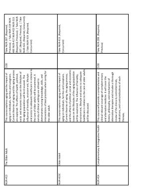 This course explores aging and the impact of aging on individuals , families and caregivers . Current theories of aging and the aging process are explored . The effects of health , political , social and economic issues on the lifestyles of the aging population will be discussed . The influence of heredity , environment , lifestyle and access to adequate healthcare in relation to the care of older adults will be examined . A variety of clinical settings are utilized to demonstrate nursing knowledge , skills , and interventions of best practices when caring for the older adult . |