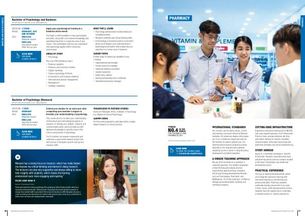 • A Psychology in business practice component where you’ ll deepen your understanding of psychological principles while advancing your expertise in a chosen area of business.