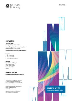 The information in this brochure was correct at the time of publication( January 2026). Monash University Malaysia reserves the right to alter this information should the need arise.