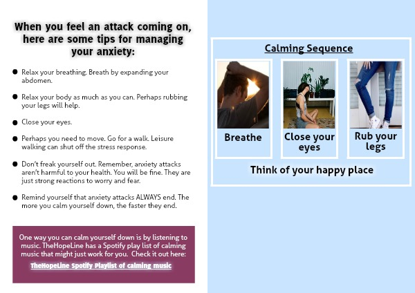 When you feel an attack coming on, here are some tips for managing your anxiety: