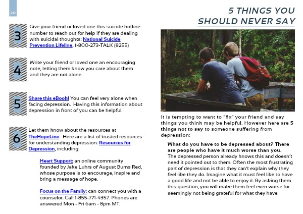 Let them know about the resources at TheHopeLine. Here are a list of trusted resources for understanding depression: Resources for Depression, including: