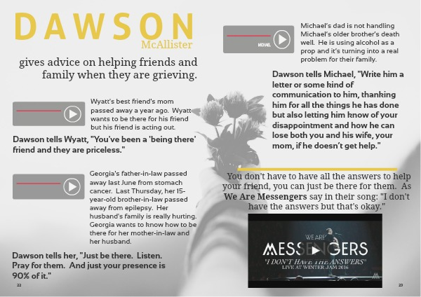 You don't have to have all the answers to help your friend, you can just be there for them. As We Are Messengers say in their song: "I don't have the answers but that's okay."