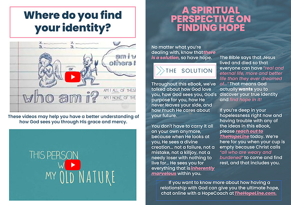 If you’re deep in your hopelessness right now and having trouble with any of the ideas in this eBook, please reach out to TheHopeLine today. We’re here for you when your cup is empty because Christ calls “all who are weary and burdened” to come and find rest, and that includes you.