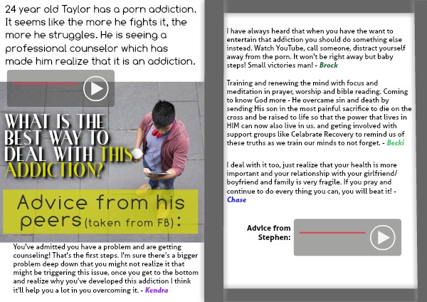 24 year old Taylor has a porn addiction. It seems like the more he fights it, the more he struggles. He is seeing a professional counselor which has made him realize that it is an addiction.