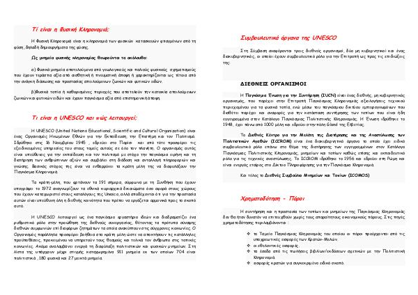 Παγκόσμιας Πολιτιστικής Κληρονομιάς, μνημείων και τοπίων καθώς επίσης και εκπαιδευτικό