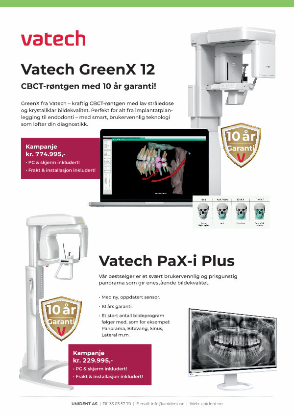 GreenX fra Vatech – kraftig CBCT-røntgen med lav stråledose og krystallklar bildekvalitet. Perfekt for alt fra implantatplanlegging til endodonti – med smart, brukervennlig teknologi som løfter din diagnostikk.