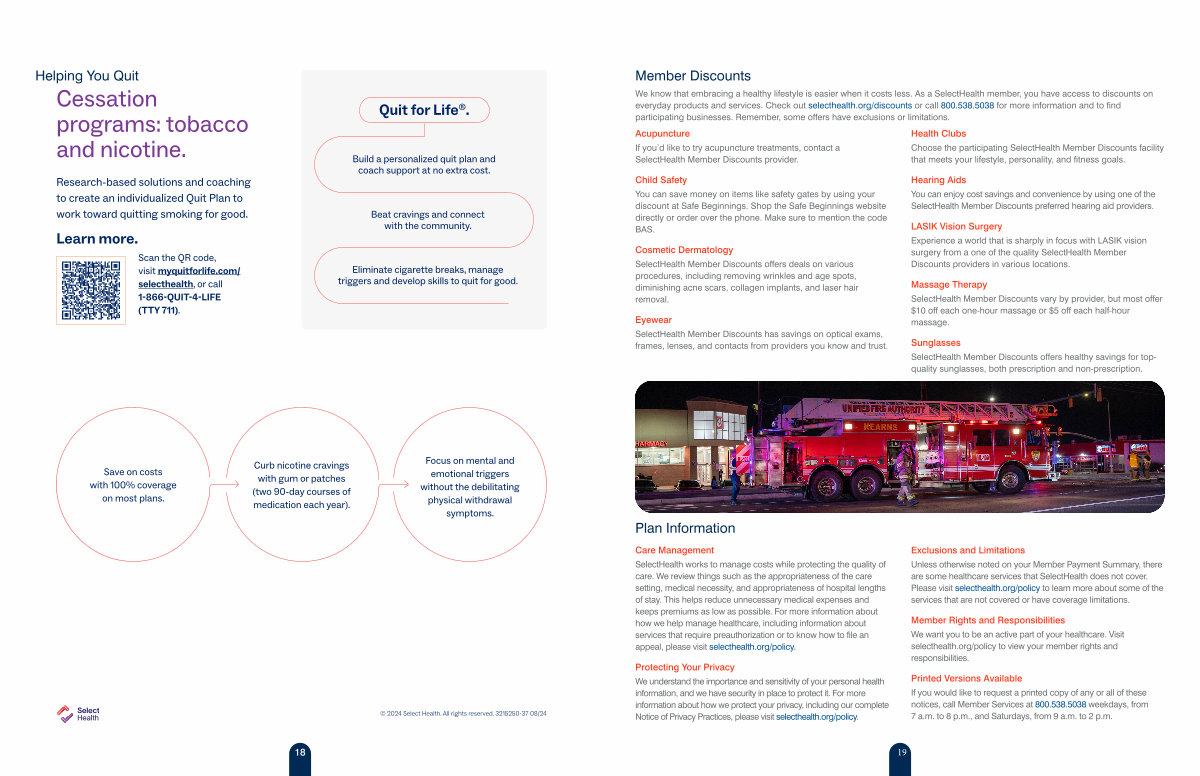 We know that embracing a healthy lifestyle is easier when it costs less. As a SelectHealth member, you have access to discounts on everyday products and services. Check out selecthealth. org / discounts or call 800.538.5038 for more information and to find participating businesses. Remember, some offers have exclusions or limitations.