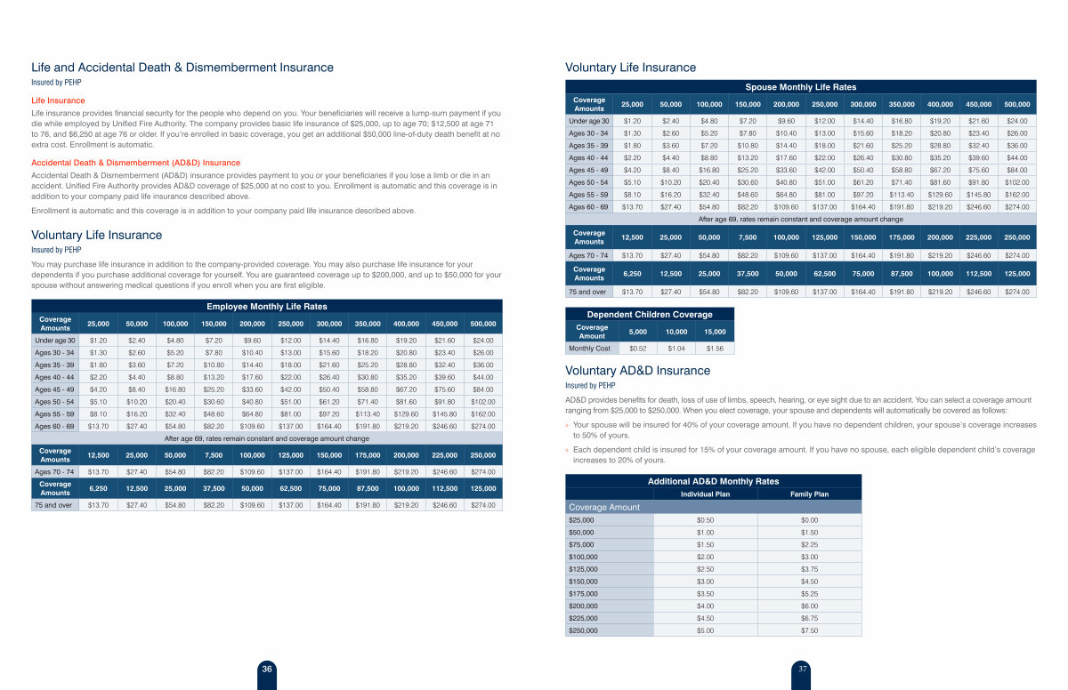 Employee Monthly Life Rates | |||||||||||