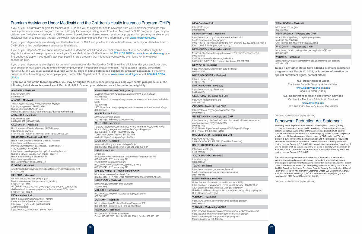 If you live in one of the following states, you may be eligible for assistance paying your employer health plan premiums. The following list of states is current as of March 17, 2025. Contact your state for more information on eligibility.