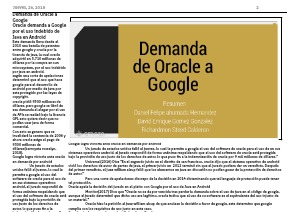 Monitor(2017) Dice que “Oracle no se da por vencida tras perder la demanda sobre el uso de java en el código de google, aunque el jurado determinó que dicho uso era legítimo, oracle indica que el uso de su software es el equivalente del uso injusto de un material.”
