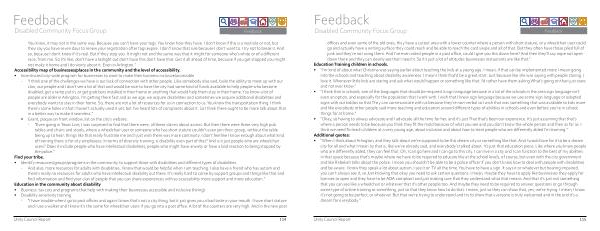• Identify resources / groups / programs in the community to support those with disabilities and different types of disabilities . - And also , more resources for adults with disabilities . I know that would be helpful when I am teaching . I also have a friend who has autism and there ’ s really no resources for adults who have intellectual disability out there . It ’ s really hard to come by support groups and things like that and find information and find your clan of people that you can share experiences with so accessibility more support and more education .”