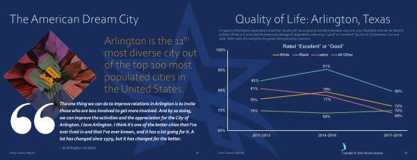 The one thing we can do to improve relations in Arlington is to invite those who are less involved to get more involved . And by so doing , we can improve the activities and the appreciation for the City of Arlington . I love Arlington . I think it ’ s one of the better cities that I ’ ve ever lived in and that I ’ ve ever known , and it has a lot going for it . A lot has changed since 1979 , but it has changed for the better .
