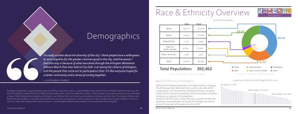 Whites have the largest population in Arlington and this is changing . The White population decreased from 2010 to 2018 , while all other populations , with the exception of Native Americans , increased . Latinos are the second-most populous ethnoracial group in Arlington , making up 29.2 percent of the population . People of Color ( POC ) as a whole make up 60.9 percent of the City ’ s population , placing Arlington at # 49 out of the largest 100 cities in terms of the percent of the population that is POC .