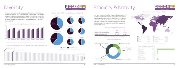 Out of the top one hundred most populated cities in the United States , Arlington is ranked as the 11 th most diverse . At 60.9 percent , the share of Arlington ’ s population represented by People of Color is more than twenty percent higher than the United States as a whole . The share of People of Color in Arlington increased by 20.5 percentage points between 2000 and 2018 .