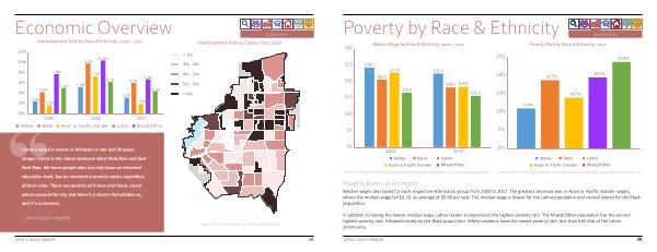In addition to having the lowest median wage , Latino residents experience the highest poverty rate . The Mixed / Other population has the second highest poverty rate , followed closely by the Black population . White residents have the lowest poverty rate , less than half that of the Latino community .