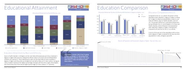 Asian or Pacific Islanders in Arlington are the most likely ethnoracial group to have a bachelor ’ s degree or higher ( 36.6 percent ), followed by White residents ( 31.8 percent ) and Mixed / Other residents ( 31.4 percent ). Those identifying as Latino are the least likely to have a bachelor ’ s degree or higher , and those who are foreign-born are half as likely as U . S . -born Latinos . Immigrant Latino residents represent the highest percentage of people with less than a high school degree , over three times that of the second-highest percentage ( U . S . -born Latinos , 17.7 percent ).