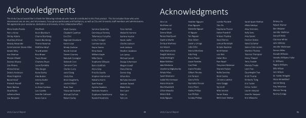 95 Acknowledgments Unity Council Report 95 Chin Lin Matthew Loh Angela Luna Donna Mack Renee MacQuaid Daphne Martin Enrique Martinez Joe Mason Yoko Matsumoto Dwight McKissic Holly McKnight Blake McMinn Jake Medrano Uzodinma Mgbahurike Winjie Miao Sarah Monteiro Isabel Montemayor Maria Mosomi Alex Mwakikoti Lillian Mwasha Meera Neb Andy Nguyen Heather Nguyen Khoi Nguyen Michelle Nguyen Vi Nguyen Yen Nguyen Elzie Odom Destiny Ortega Lidia Ortiz Maria Otterbine Ada Pang Bruce Payne Jason Paredes Cari Peek Aaron Perales Gilbert Perales Jim Parajon Gloria Peña Nannette Penson Anna Pham Hailey Phillips Sue Phillips Sunday Phillips Loretta Plunkett Chin Po Stephanie Posner Stefan Powdrill Arlener Poydras David Ramos Lemuel Randolph Natalie Raulston Matt Reeves Lisa Rein Zahari Rios Pam Roach Cheyenne Robinson Sherwin Ruben Nellie Sanchez Brent Sasley Christina Satcher Kiara Scaggs Aja Scott Mike Secrest Aaron Sharp Beth Anne Shelton Sarah Spain-Shelton Aftab Siddiqui Alisa Simmons Kelly Sons Amy Speier Deshon Stokes Kaled Suliaman Sakina Tahir-James Martine Thomas Teionna Thompson Gincy Thoppil Terry Tisdale Mariely Tirado Liem Tran Quynhnghit Tran Kristi Truong Kimberly Tsing Eric Tucker Estrus Tucker Lauren Vanpool Jennifer Vasquez Kris Villacorta Britney Vo Robert Warren Ben Weigner Jennifer Wellman Danyell Wells Clarence White John Whitely Jennifer Wichmann Dennis Wiles Donald Williams Vonetta Williams-Fuller G . Williams Regina Williams Billy Wilson Joni Wilson Dr . Yvette Wingate Alicia Winkelblech Janine Wong Trey Yelverton Marcus Young Norma Zuniga