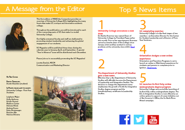 University College announced the launching of its first fully online undergraduate degree. The B.S. in Integrative Studies is now offered as an online option in support of a new initiative out of the Governor's Office, the Go Back-Move Ahead campaign.