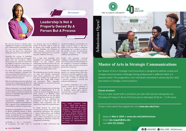 Apply by May 4 , 2024 at www . aku . edu / admissionsea Email : joe . nyagah @ aku . edu Call + 254 722 525951