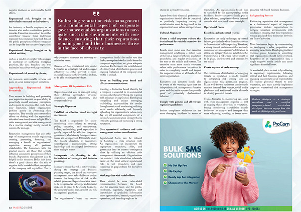 Embracing reputation risk management as a fundamental aspect of corporate governance enables organizations to navigate uncertain environments with confidence , ensuring that their reputations remain good and their businesses thrive in the face of adversity .