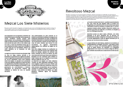 Los amantes del mezcal sabrán que una de las características de esta bebida es que al agitarse un poco se produce un “collar de perlas” en el borde del destilado que es el que determina el porcentaje de alcohol que posee. Revoltoso tiene 47 grados de alcohol, por lo que su perlado es mediano y se mantiene unos segundos al ser agitada su botella.