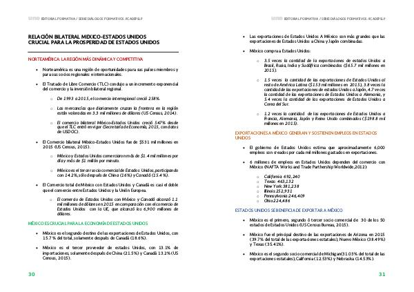 • México es el primero, segundo ó tercer socio comercial de 30 de los 50 estados de Estados Unidos( US Census Bureau, 2015).