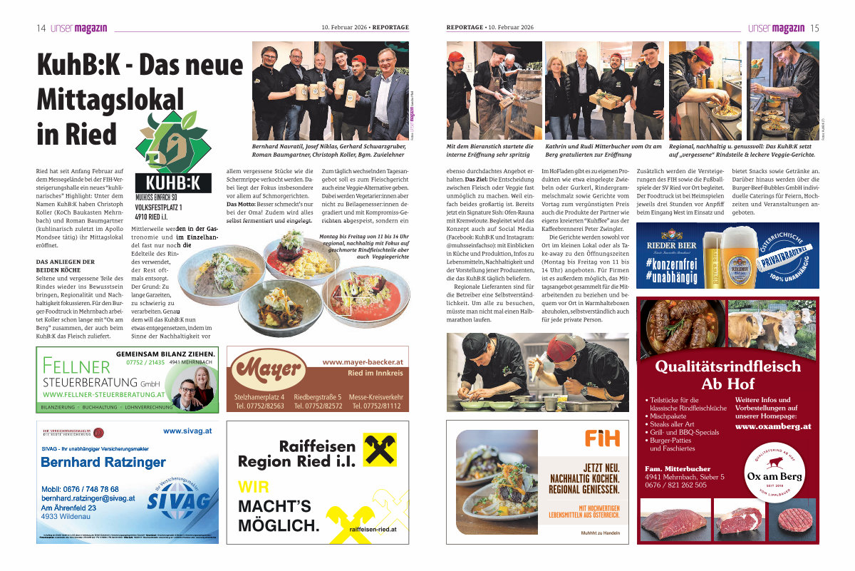 ebenso durchdachtes Angebot erhalten. Das Ziel: Die Entscheidung zwischen Fleisch oder Veggie fast unmöglich zu machen. Weil einfach beides großartig ist. Bereits jetzt ein Signature Sish: Ofen-Rauna mit Krenveloute. Begleitet wird das Konzept auch auf Social Media( Facebook: KuhB: K und Instagram: @ muhsseinfachso): mit Einblicken in Küche und Produktion, Infos zu Lebensmitteln, Nachhaltigkeit und der Vorstellung jener Produzenten, die das KuhB: K täglich beliefern.