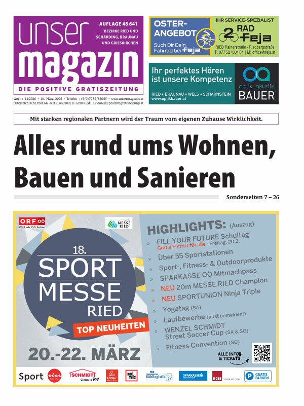 Woche 11 / 2026 • 10. März 2026 • Telefon + 43( 0) 77 52 / 836 65 • www. unsermagazin. at Österreichische Post AG • RM 91A491002 K • 4910 Ried i. I. • www. diepositivegratiszeitung. at