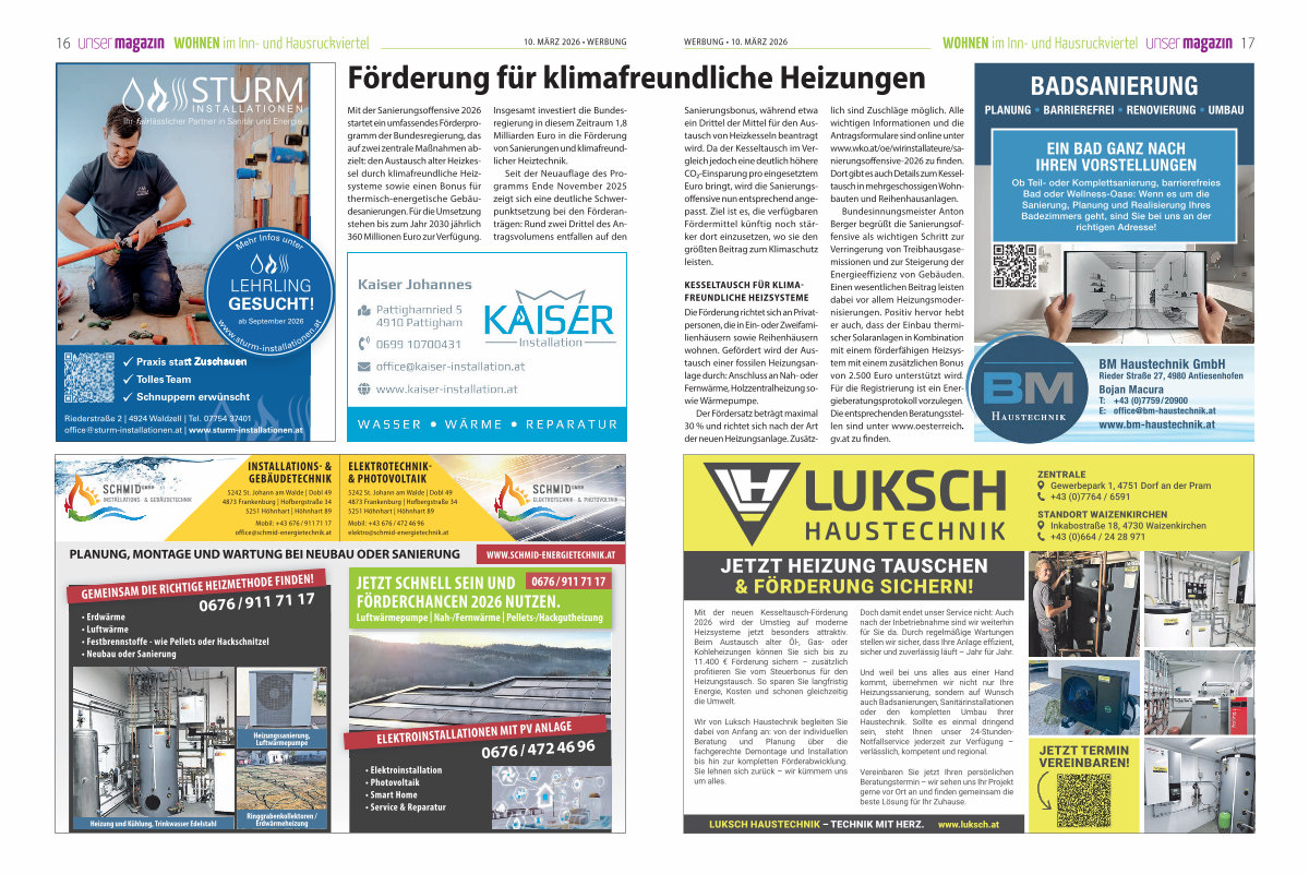 WERBUNG • 10. MÄRZ 2026 WOHNEN im Inn- und Hausruckviertel 17 undliche Heizungen