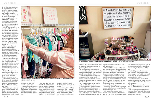 Executive Director Jennifer Reeder sorts children ’ s clothing donated to AA Women ’ s Services . | PHOTO BY ROBERT HALCOMB