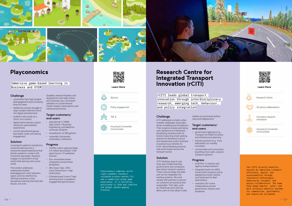 rCITI addresses complex urban mobility challenges using datadriven modelling and simulations. Their projects include optimising train operations for Mitsubishi, developing carshare tools for GoGet, improving smart parking policies for Randwick Council, and researching motion sickness in autonomous vehicles for Ford— demonstrating practical, real-world impact across the transport sector.