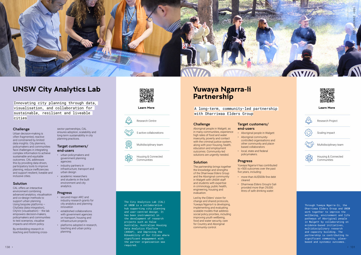 Through Yuwaya Ngarra-li, the Dharriwaa Elders Group and UNSW work together to improve the wellbeing, environment and life pathways of Aboriginal people in Walgett by collaborating on evidence-based initiatives, multidisciplinary research and capacity building. The partnership is contributing to significant community, placebased and systemic outcomes.