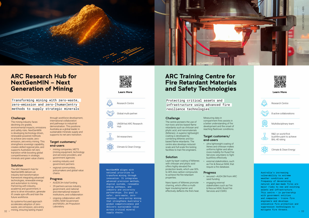 Australia’ s increasing vulnerability to extreme weather conditions and frequency of devastating natural and man-made fires are major risks to new and existing assets and infrastructure. This centre – in partnership with government entities and companies – trains fire engineers and develops innovative fire protection and suppression technologies to mitigate fire threats.