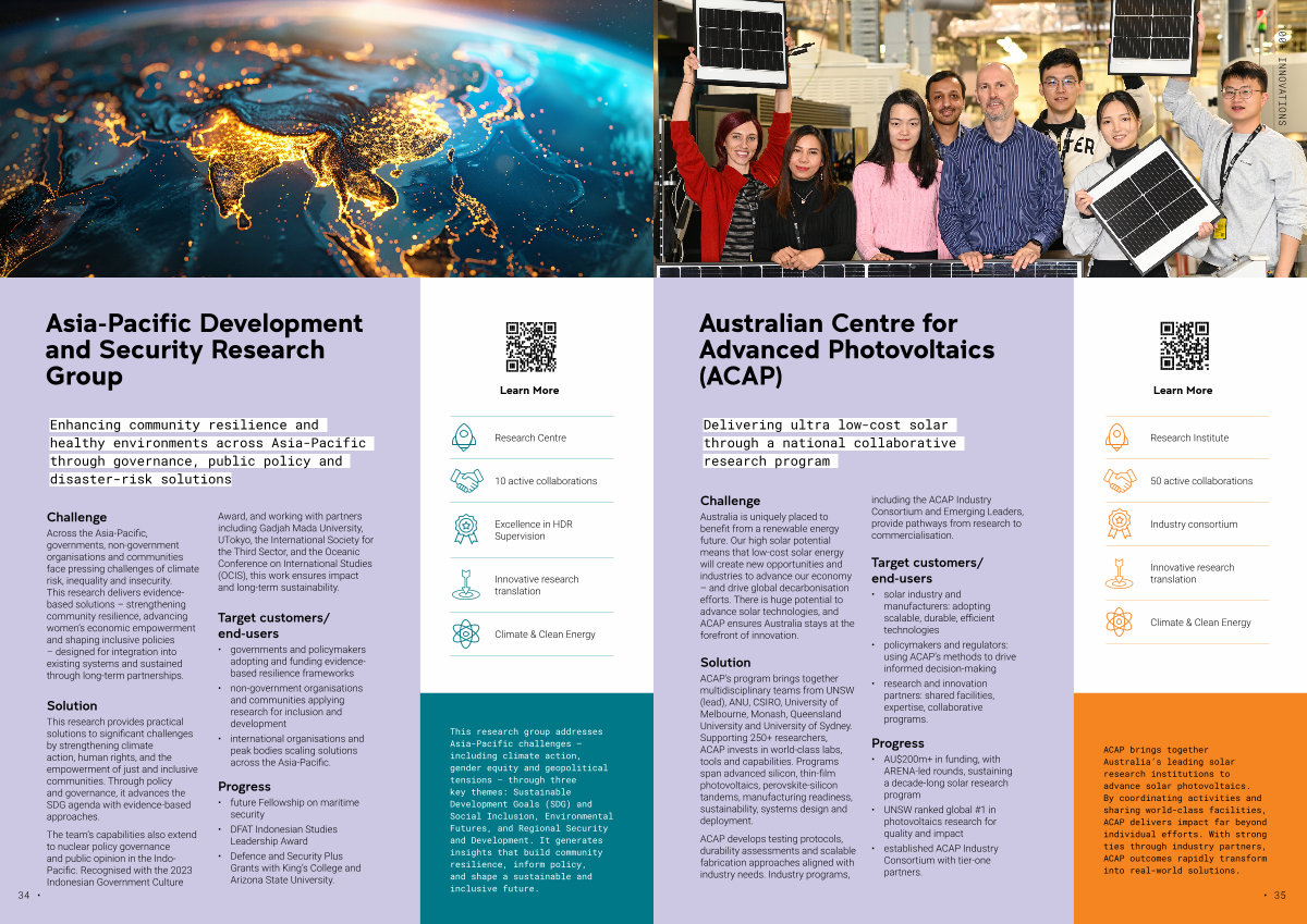ACAP develops testing protocols, durability assessments and scalable fabrication approaches aligned with industry needs. Industry programs, including the ACAP Industry Consortium and Emerging Leaders, provide pathways from research to commercialisation.