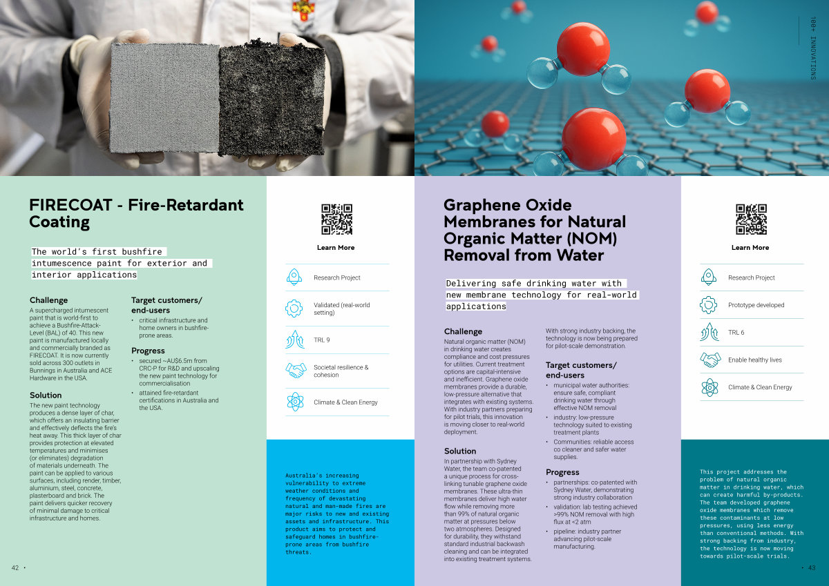 The new paint technology produces a dense layer of char, which offers an insulating barrier and effectively deflects the fire’ s heat away. This thick layer of char provides protection at elevated temperatures and minimises( or eliminates) degradation of materials underneath. The paint can be applied to various surfaces, including render, timber, aluminium, steel, concrete, plasterboard and brick. The paint delivers quicker recovery of minimal damage to critical infrastructure and homes.