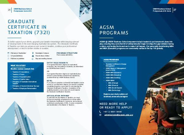 development, or lead to further studies in taxation. AGSM @ UNSW Business School empowers today’s leaders to put tomorrow’s plans into