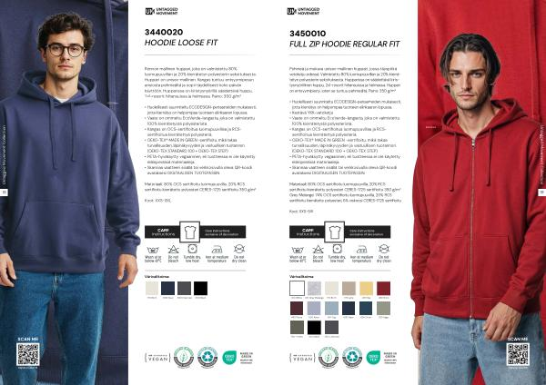 • Skannaa vaatteen sisällä tai verkkosivulla oleva QR-koodi avataksesi DIGITAALISEN TUOTEPASSIN.