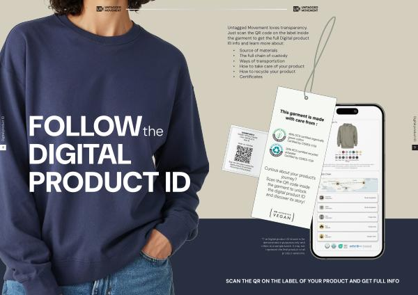 Untagged Movement loves transparency. Just scan the QR code on the label inside the garment to get the full Digital product ID info and learn more about:
