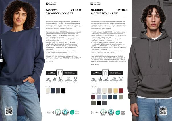 • Skannaa vaatteen sisällä tai verkkosivulla oleva QR-koodi avataksesi DIGITAALISEN TUOTEPASSIN.