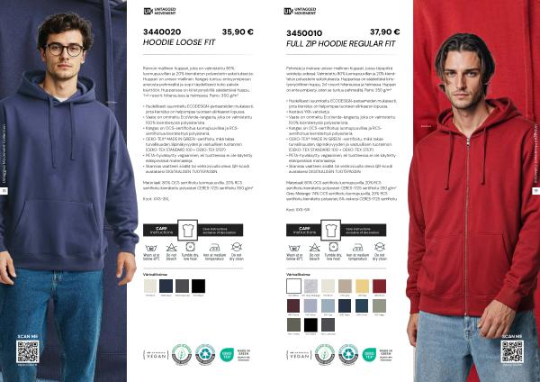 • Skannaa vaatteen sisällä tai verkkosivulla oleva QR-koodi avataksesi DIGITAALISEN TUOTEPASSIN.